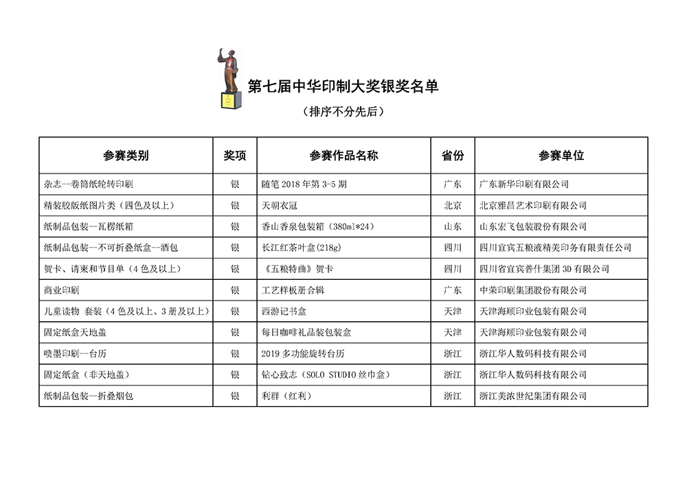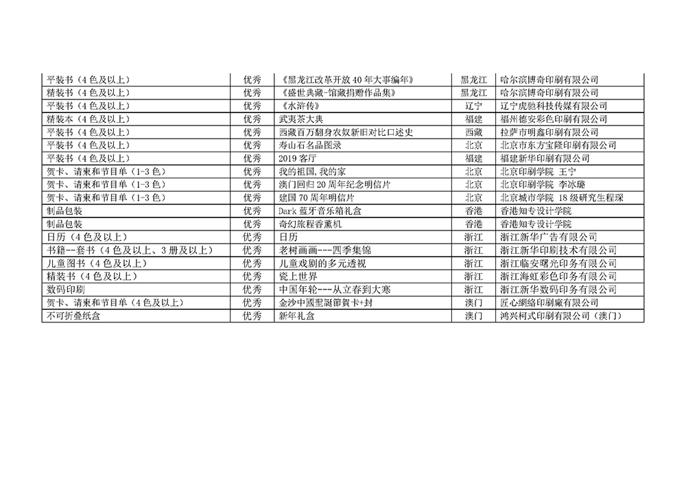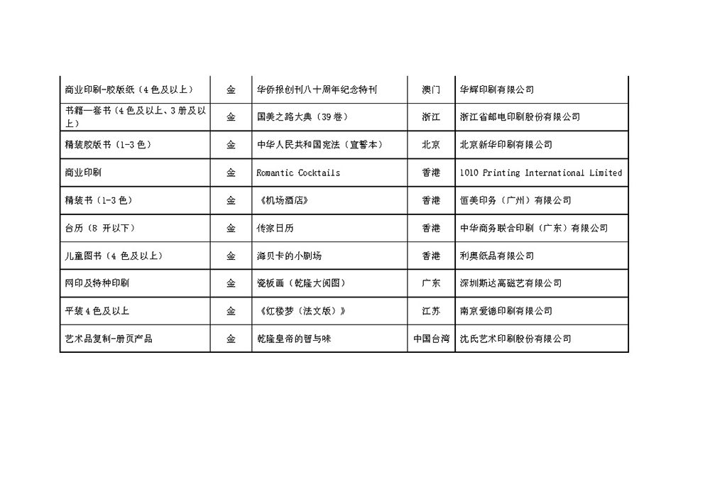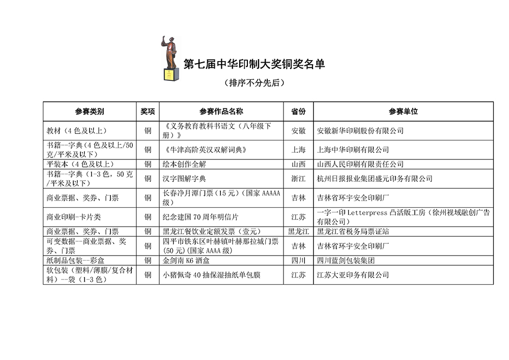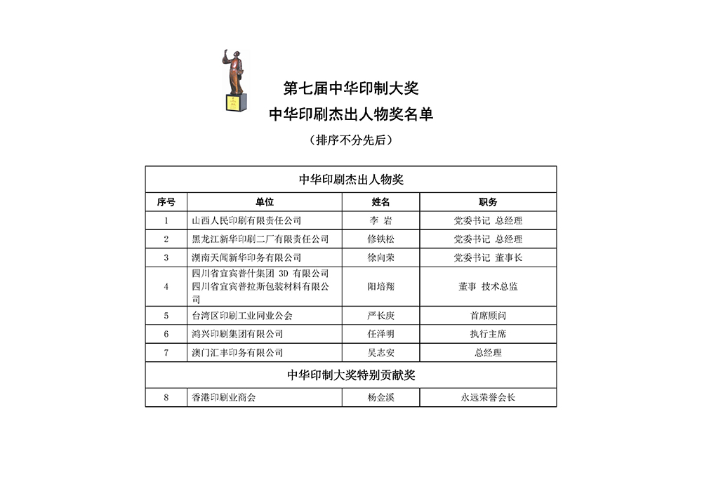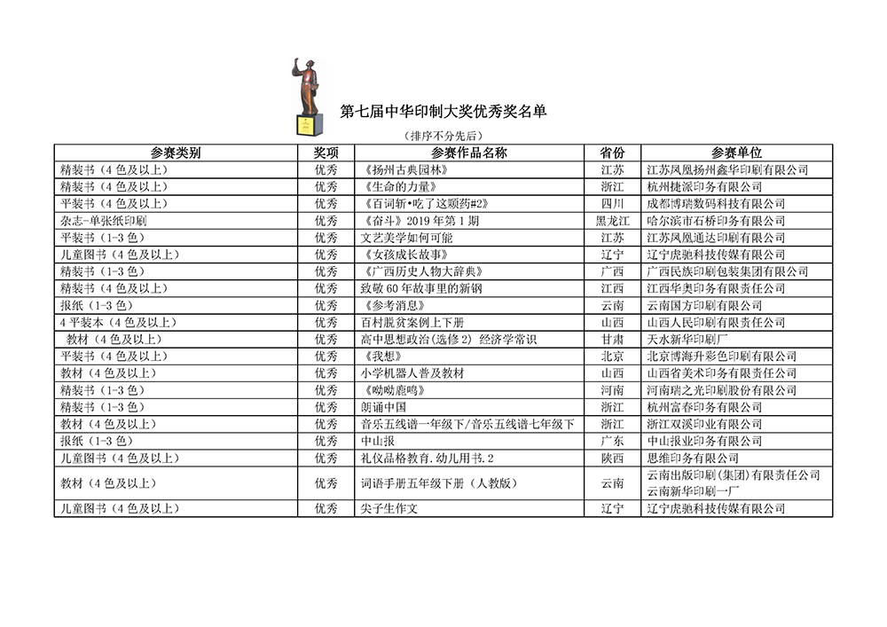 第七屆中華印制大獎獲獎名單公示